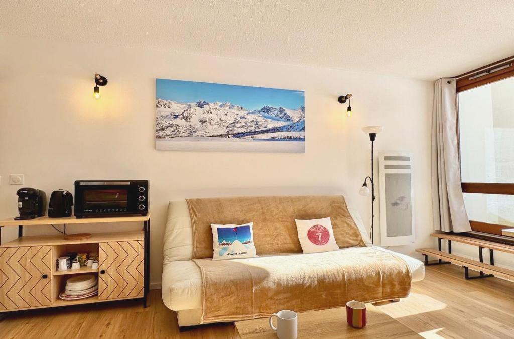 2 Pièces ISOLA 2000 - FRONT DE NEIGE tem uma varanda e localiza-se em Isola 2000, apenas a cerca de 1,7 km de Col de la Lombarde e menos de 1 km de Isola 2000. O acesso Wi-Fi gratuito está disponível e estacionamento privado pode ser organizado por um custo extra. Este apartamento com um terraço e vista da montanha apresenta 1 quarto, uma sala de estar, uma televisão de ecrã plano, uma cozinha equipada com frigorífico e máquina de lavar louça, e 1 casa de banho com chuveiro. 2 Pièces ISOLA 2000 - FRONT DE NEIGE disponibiliza um serviço de aluguer de equipamentos de esqui, um ponto de venda de passes de esqui e acesso imediato às pistas de esqui, além disso os hóspedes podem praticar esqui nas proximidades. Auron fica a 37 km de 2 Pièces ISOLA 2000 - FRONT DE NEIGE. O Aeroporto de Nice - Côte d'Azur fica a 86 km de distância.