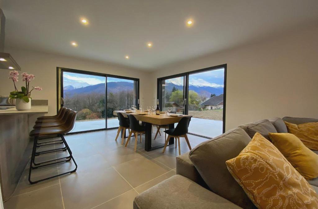 Oferecendo vista da montanha, Villa Lounge situa-se em Mercury, a 47 km de Col de la Madeleine e 49 km de Palais de l Ile. Situado a 4,2 km de Halle Olympique d'Albertville, o alojamento dispõe de um terraço e estacionamento privado gratuito. Esta casa de férias tem 3 quartos, cozinha com um frigorífico e uma máquina de lavar louça, uma televisão de ecrã plano, uma área de estar e 1 casa de banho dispondo de chuveiro. Chateau d'Annecy fica a 49 km de Villa Lounge. O Aeroporto de Chambéry - Savoie fica a 61 km da propriedade.
